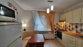 Техніка, меблі в гарному стані. Пральна машина, холодильник, газова варильна поверхня, духовка, мікрохвильова піч, кондиціонер, бойлер. Меблі: Велике ліжко, диван, письмовий стіл, меблева стінка.